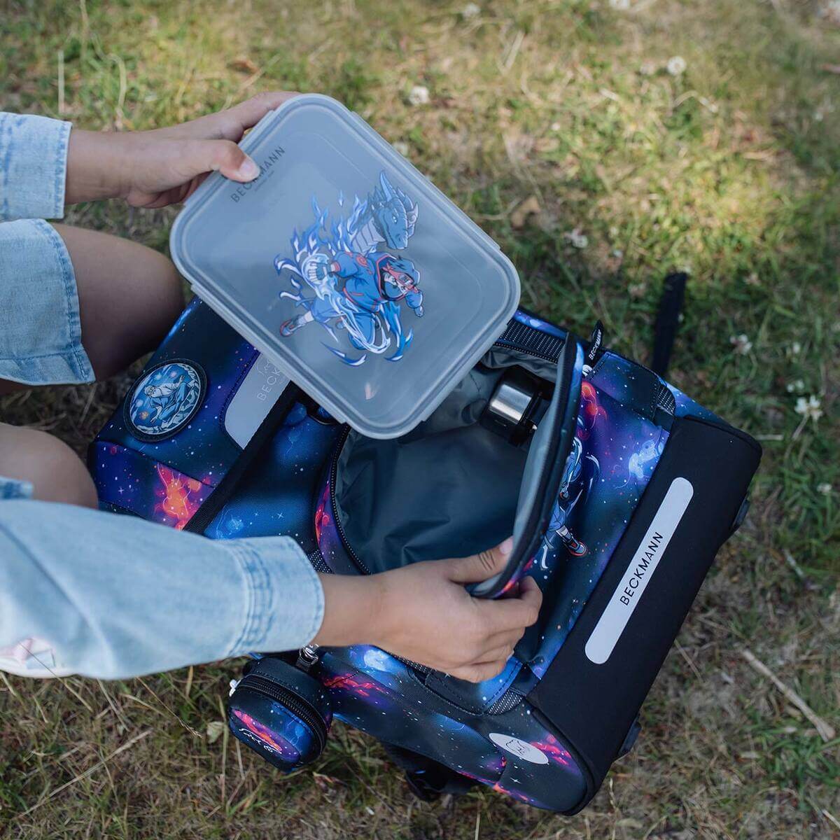 The Beckmann lunch box closes securely and tightly, and inside the box you will also find a removable divider. The designs used on the lunch boxes have been selected to match the Classic, Classic Maxi, and Active Air FLX models.