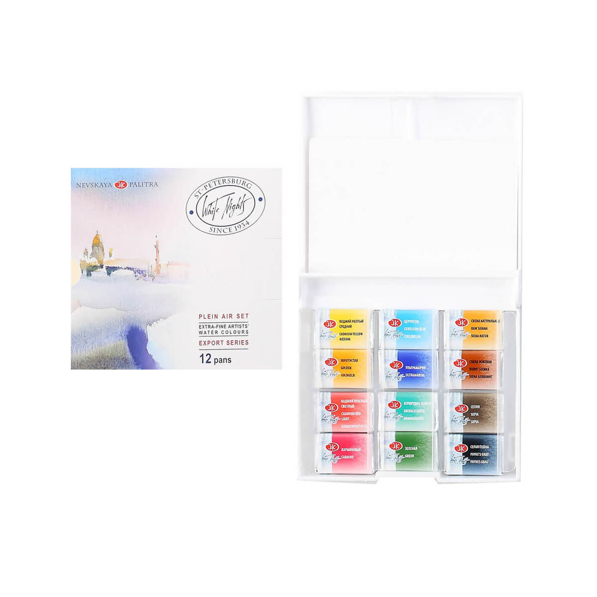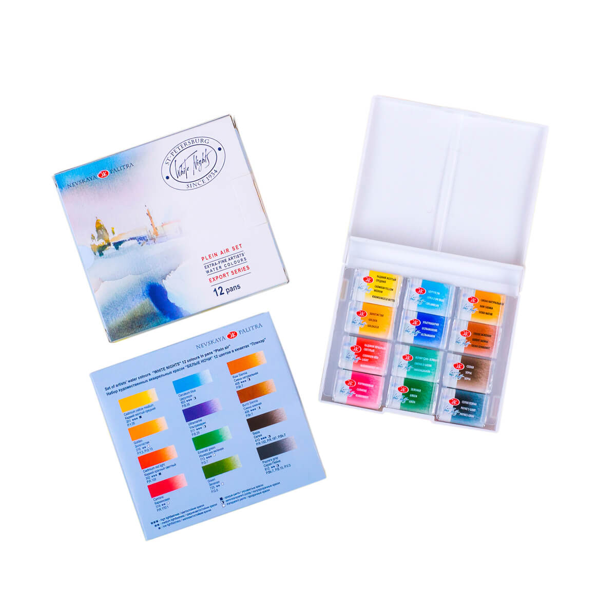 Akvarellid Komplekt “White Nights” 12 Värvi Plastkarbis “Plein Air” 19421193